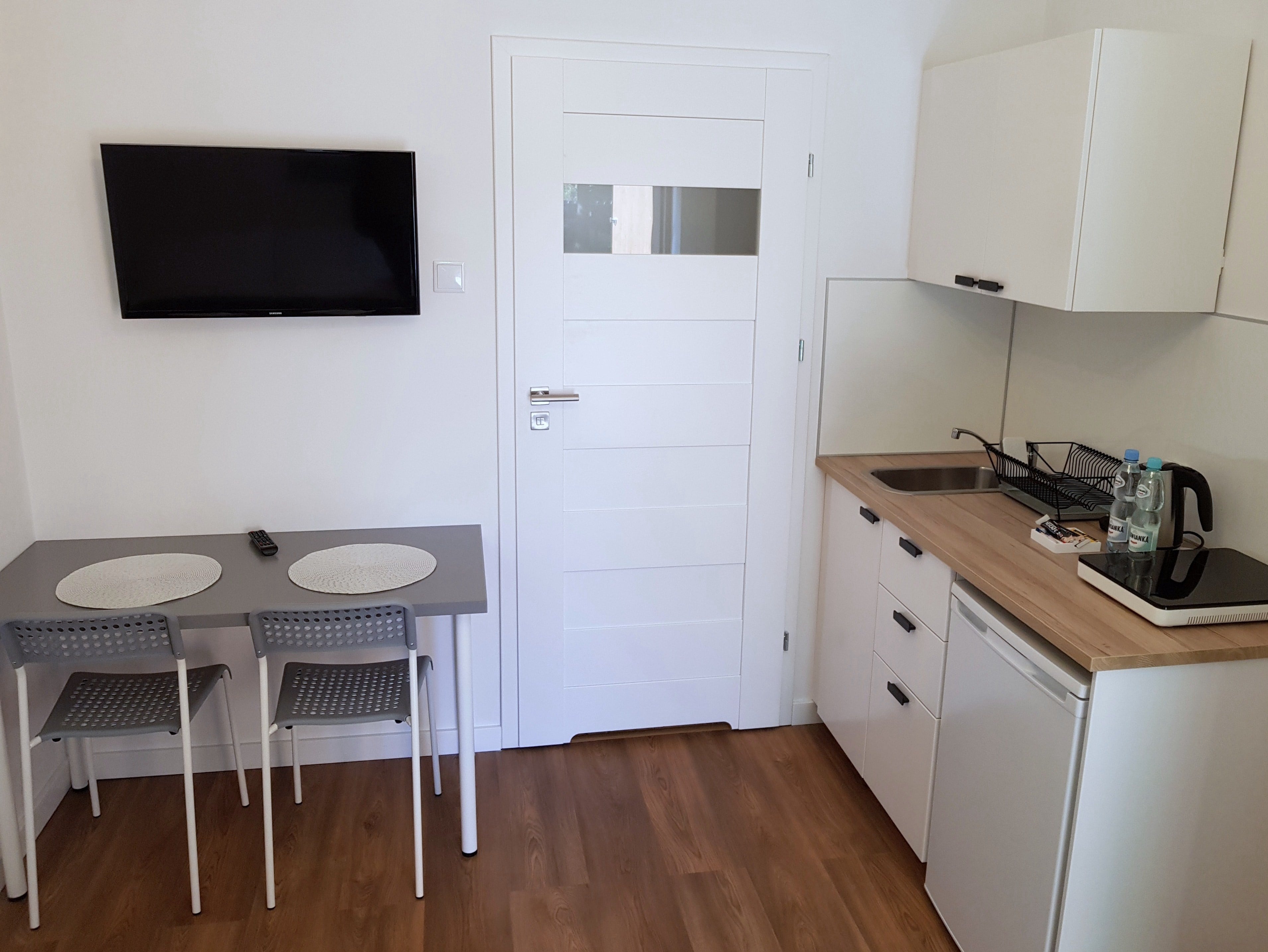 Pokój dwuosobowy z dwoma łóżkami pojedynczymi, dobrze wyposażonym aneksem kuchennym, telewizorem oraz łazienką z prysznicem. Do pokoju przynależy jedno miejsce parkingowe dla samochodu osobowego.